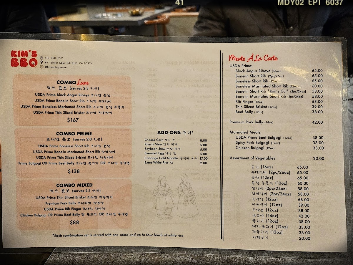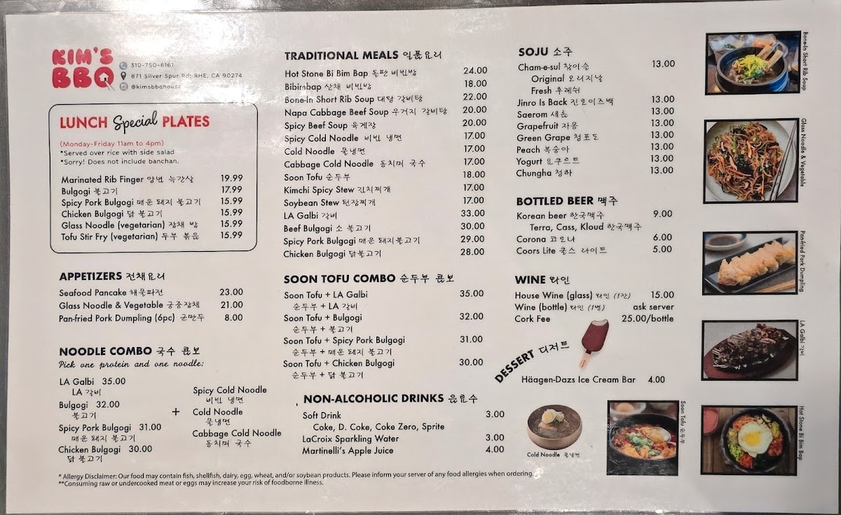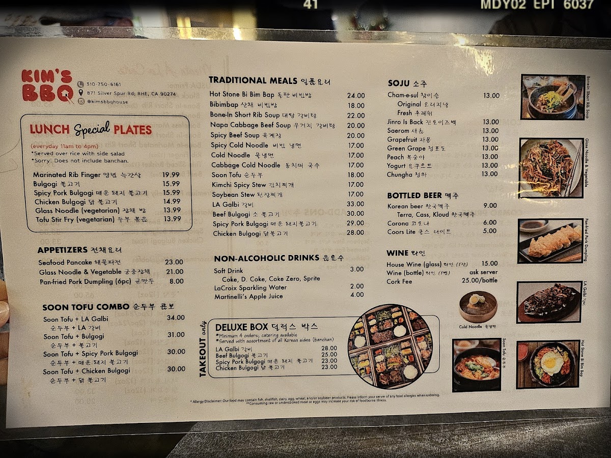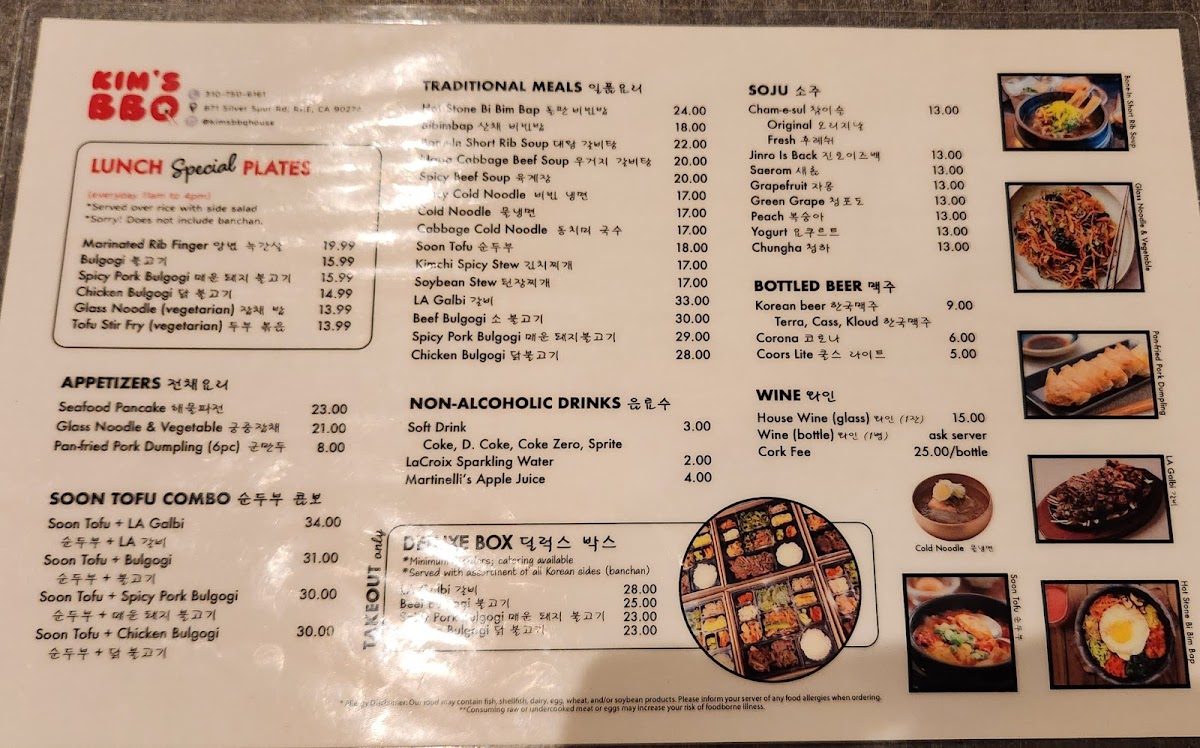 Stepping into 871 Silver Spur Rd in Rolling Hills Estates, it’s easy to see why locals point visitors straight to Kim's Bbq Korean Bbq Cuisine 고기집 Menu when they’re craving something bold and satisfying. The moment you look through the offerings, you can tell this place leans into generous cuts of meat, from well-marbled short ribs to pork belly that cooks up with the perfect sizzle. And while the barbecue is the main draw, the spread of banchan makes everything feel even more inviting, adding pops of color and flavor that keep the meal lively.